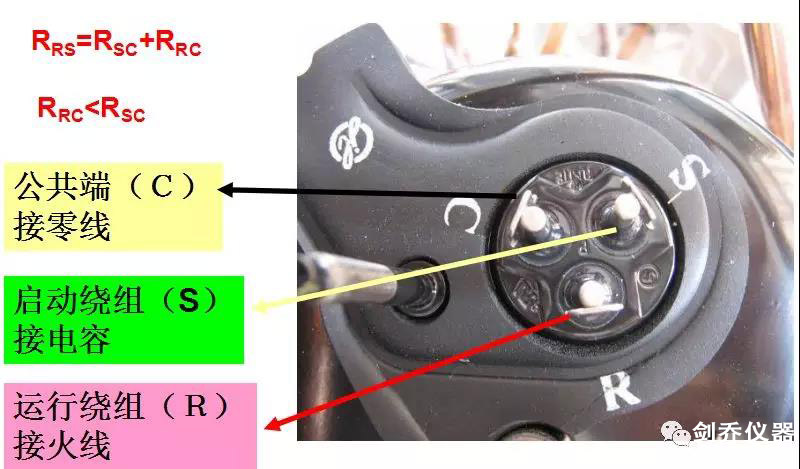運行端(R),啟動端(S),公共端(C),RS間的電阻大于SC間的電阻大于RC間的電阻。RS間電阻等于SC間電阻加RC間的電阻。利用上述規(guī)律可以予以判別。需要說明的是三相壓縮機的接線端子電阻值是相等的。